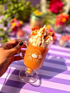 - Luxurious Topping: Crowned with sculpted, fluffy 'whipped cream' wax, a drizzle of caramel-colored wax syrup, and miniature chocolate bar embeds for a truly gourmet presentation.