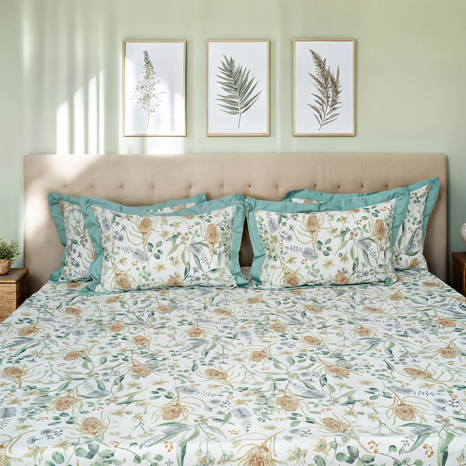 Laska Green Corn (150 TC) - 100% Cotton King-Size Bedsheet + 2 Pillow Covers