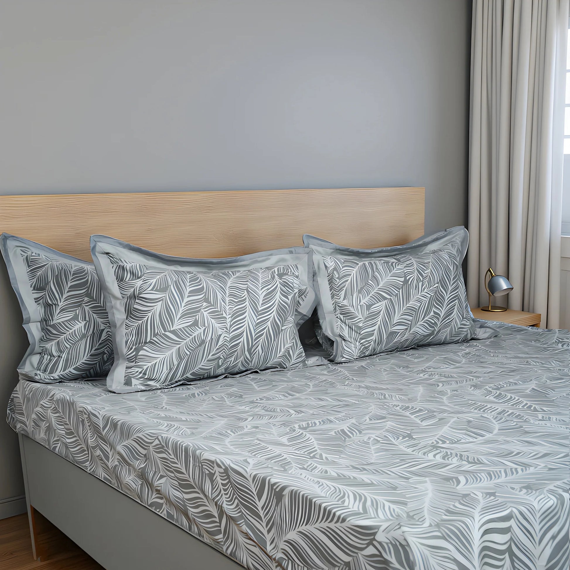 Lavish Palm Veil 100% Cotton King-Size Bedsheet + 2 Pillow Covers