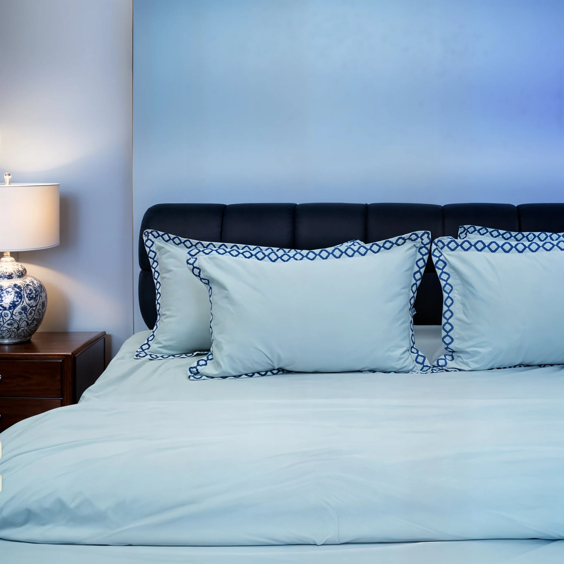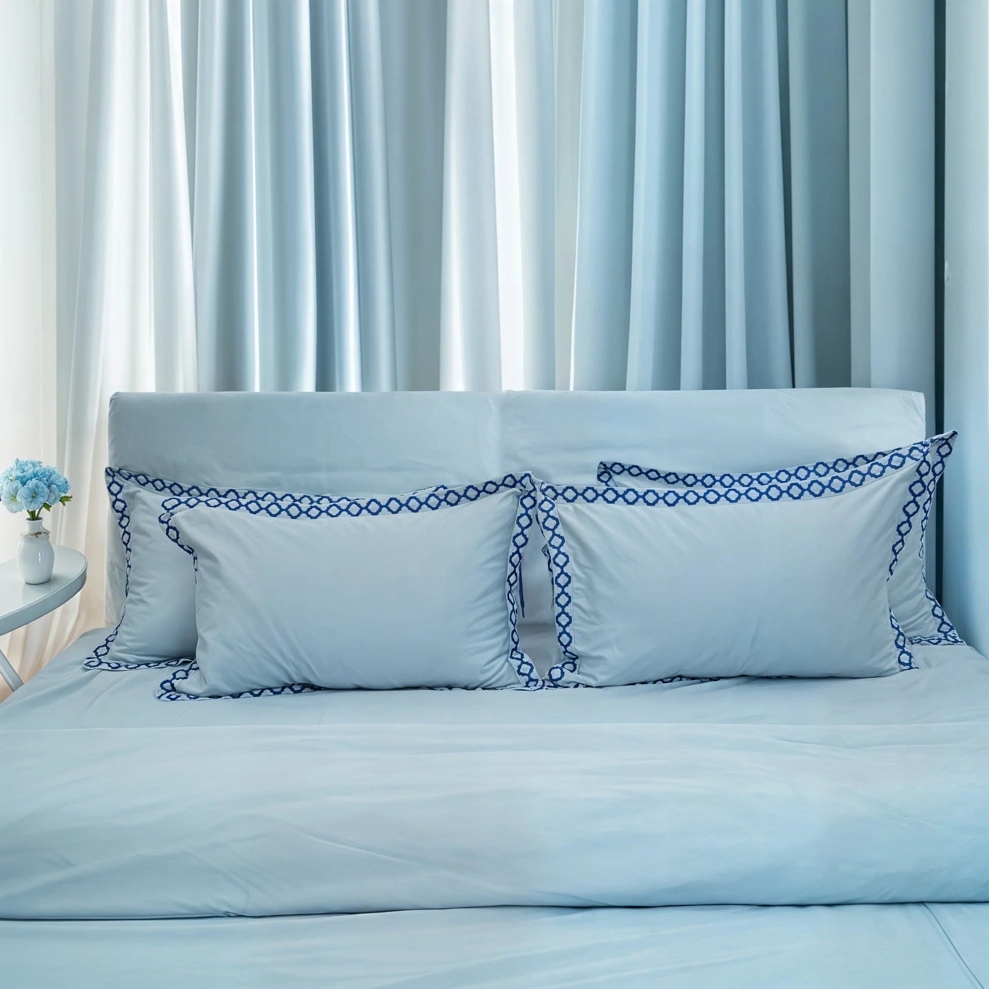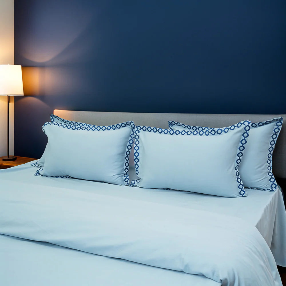Pristine Light Sky (300 TC) - 100% Cotton King-Size Bedsheet + 2 Pillow Covers