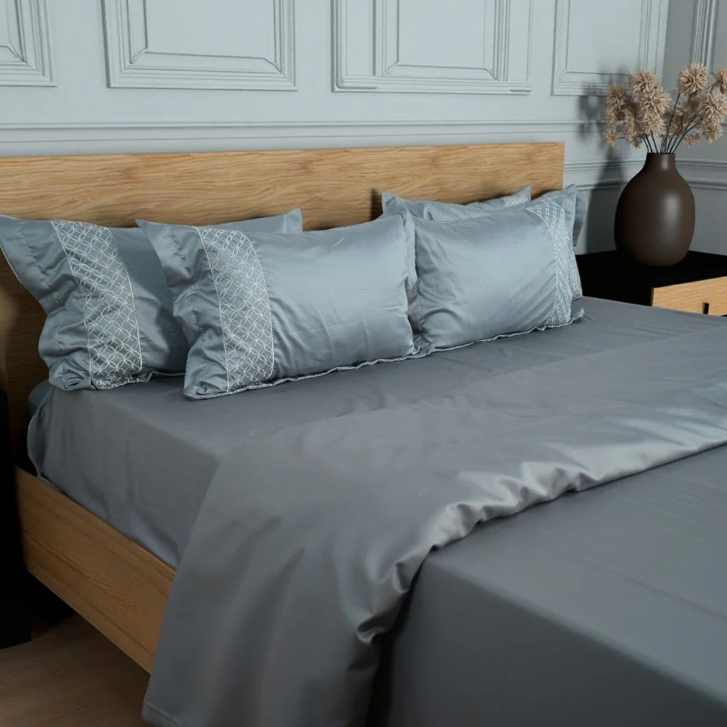Unicorn Blue Reven (Silver) (400TC) - 100% Cotton King-Size Bedsheet + 2 Pillow Covers