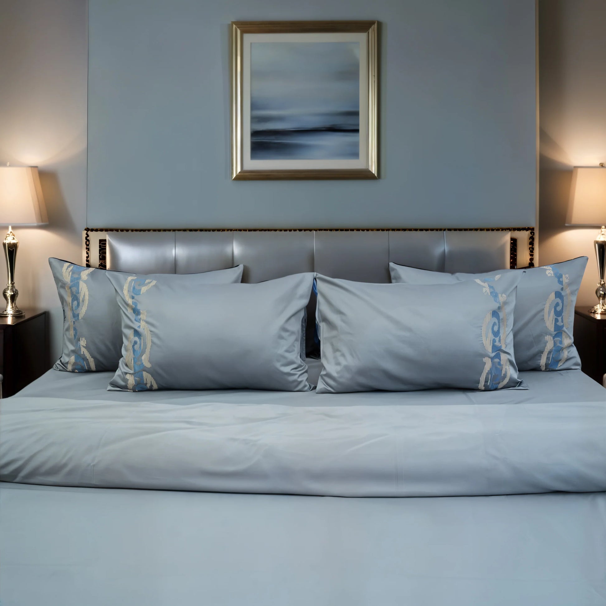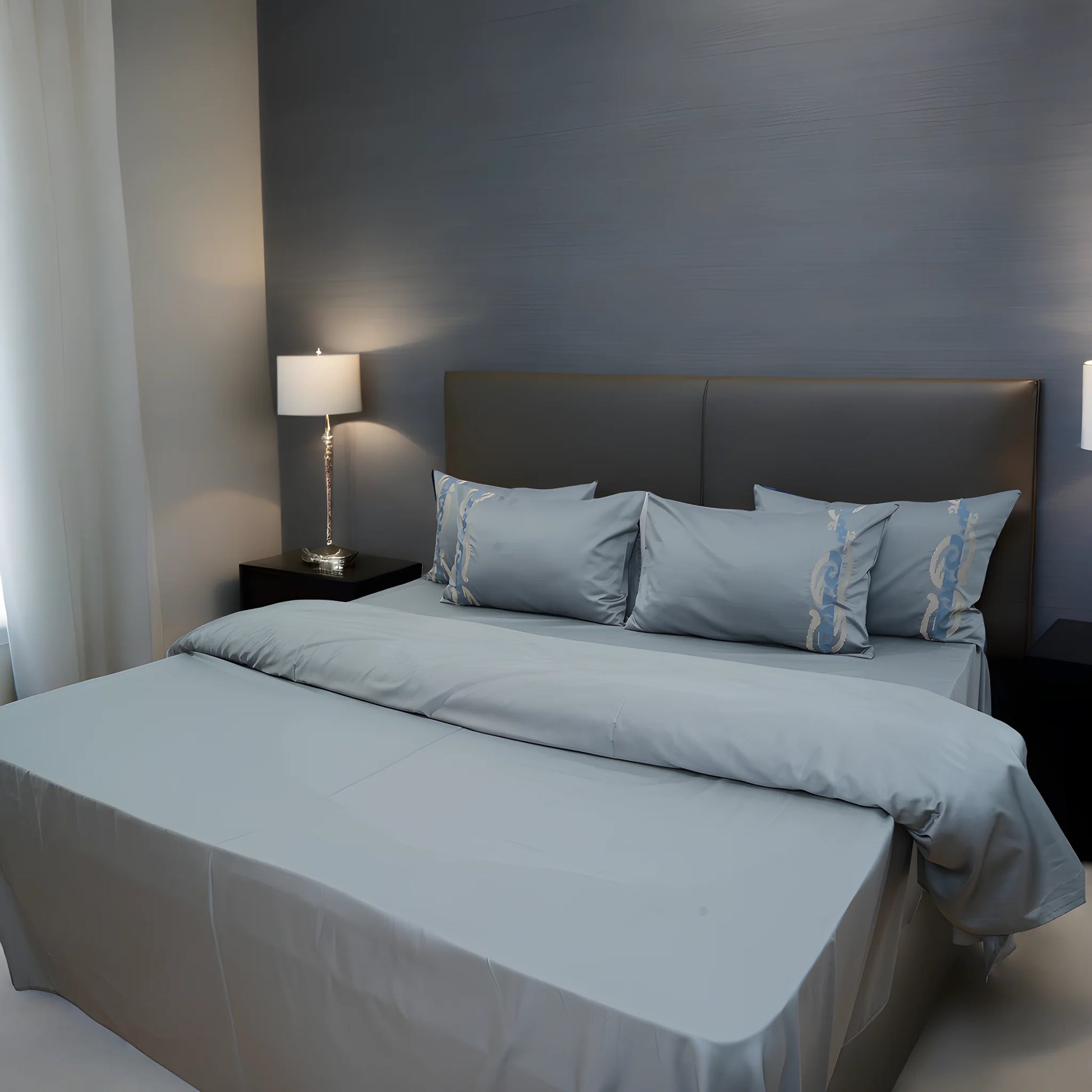 Unicorn Silver Sea (400TC) - 100% Cotton King-Size Bedsheet + 2 Pillow Covers