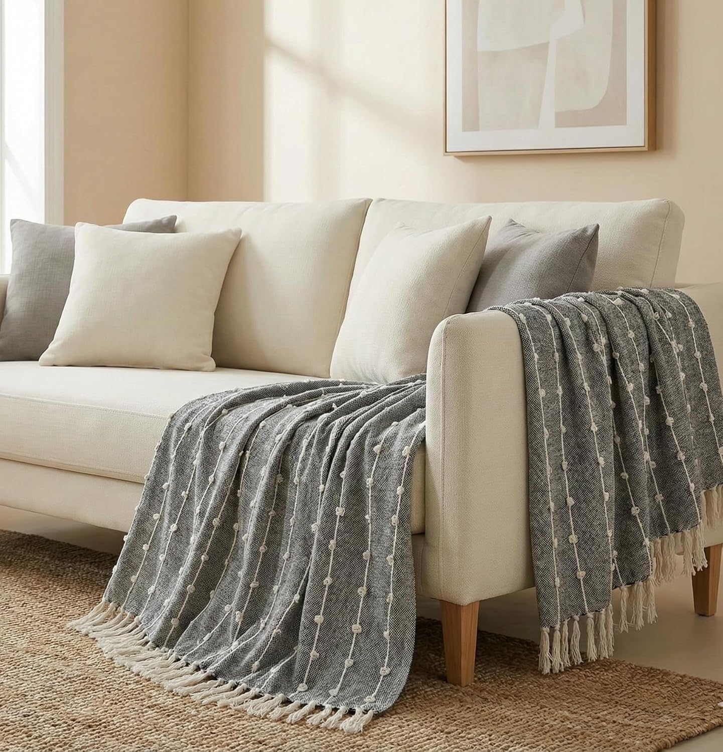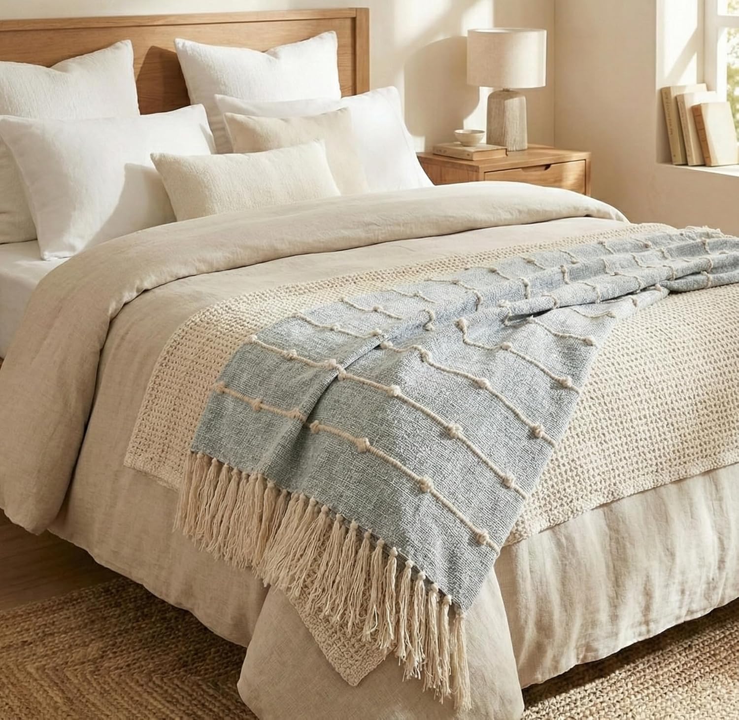 Playful Fringe: Finished with hand-knotted tassel edges that add movement and a touch of artisan flair to your home decor.